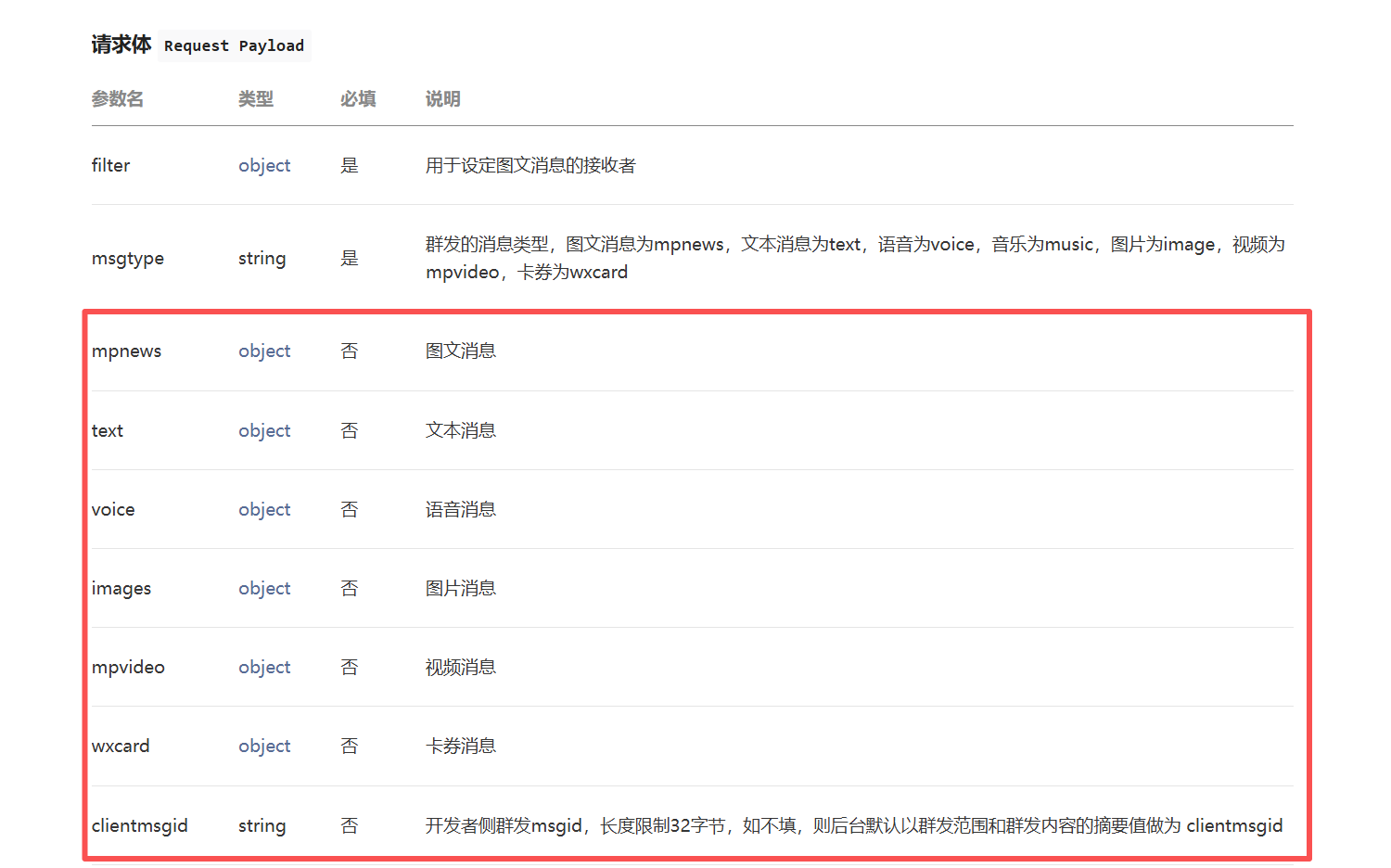 1.必填项 只需要填写 接收者和 消息类型,那怎么判断是群发的哪一条?