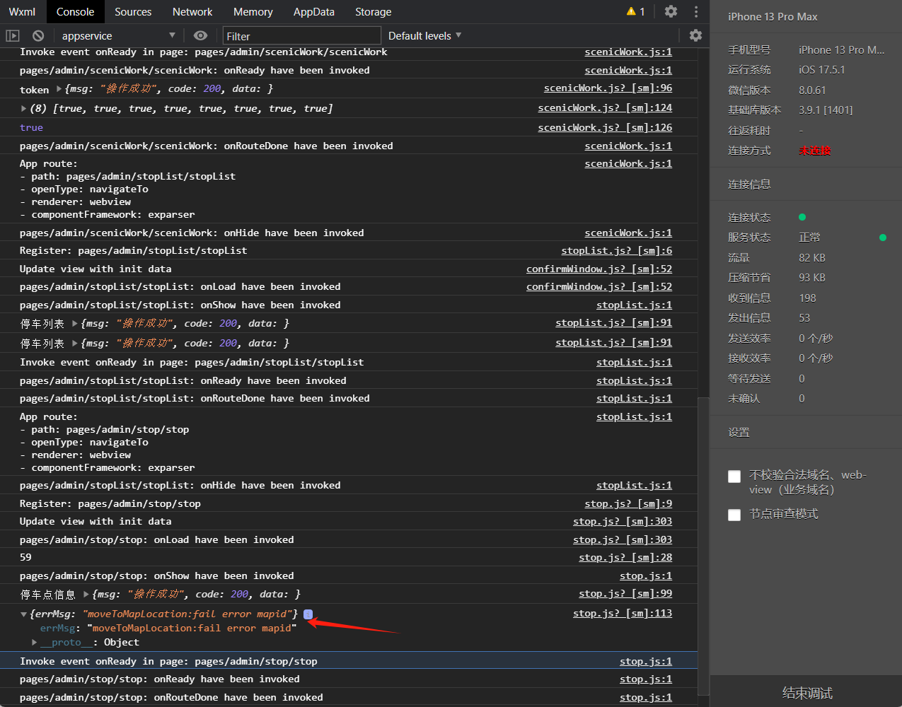 然而在微信开发者工具中测试时不会产生该问题.到了预览与正式版的时候就会出现.报错信息为: