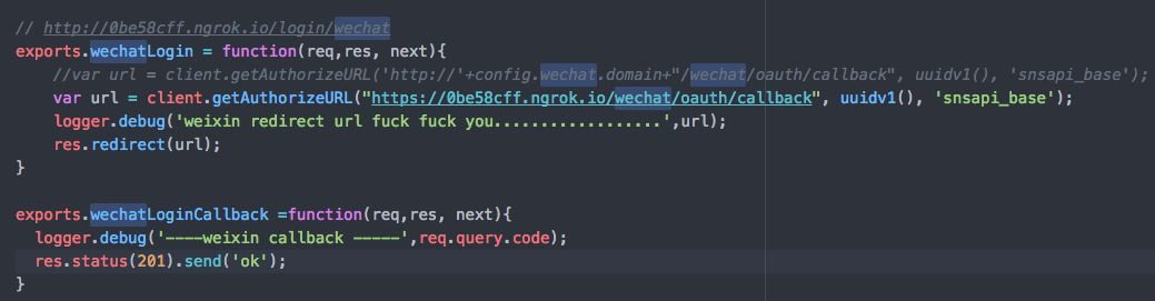 以下是我的node.js代码,使用的是 'wechat-oauth' 库