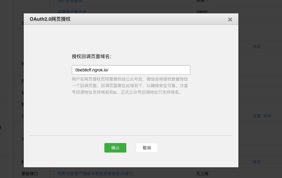 JS接口安全域名 和 网页授权获取用户基本信息 授权回调页面域名 都是 设置成 0be58cff.ngrok.io