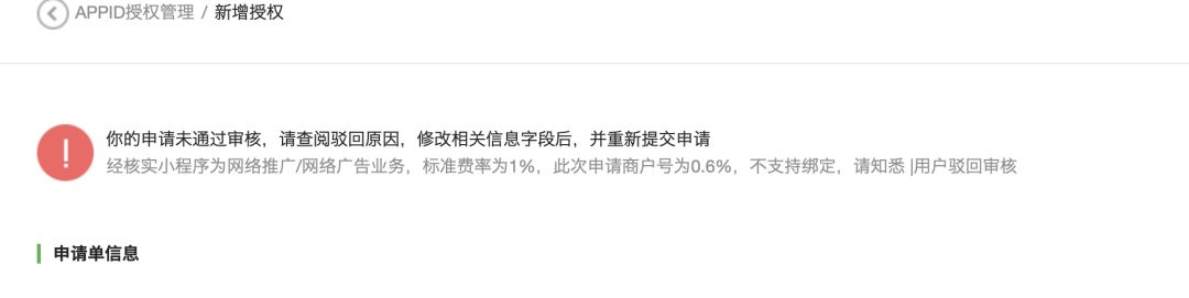 我们的小程序审核反馈为红包类目,于是我们通过小程序通知的链接申请了红包商户号,但申请完成后却无法绑定原有的小程序。