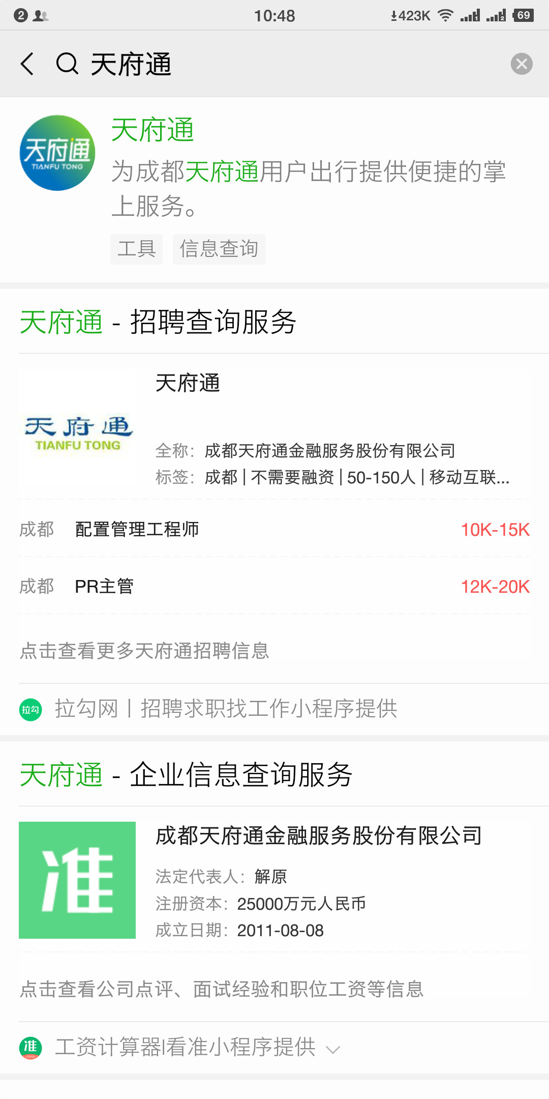 举例:上周去成都出差,坐地铁是不能刷微信和支付宝的,朋友告诉我有个“天府通”,作为一个小程序的开发和应用者,我第一时间想到在小程序里找“天府通”