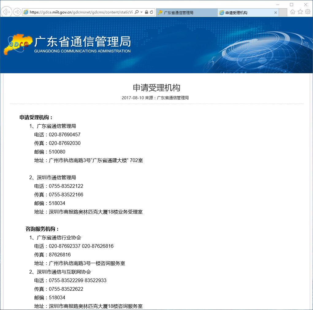 为了获得ICP证书(EDI证书),我司向广东省通信管理局、深圳市通讯管理局都发出了申请