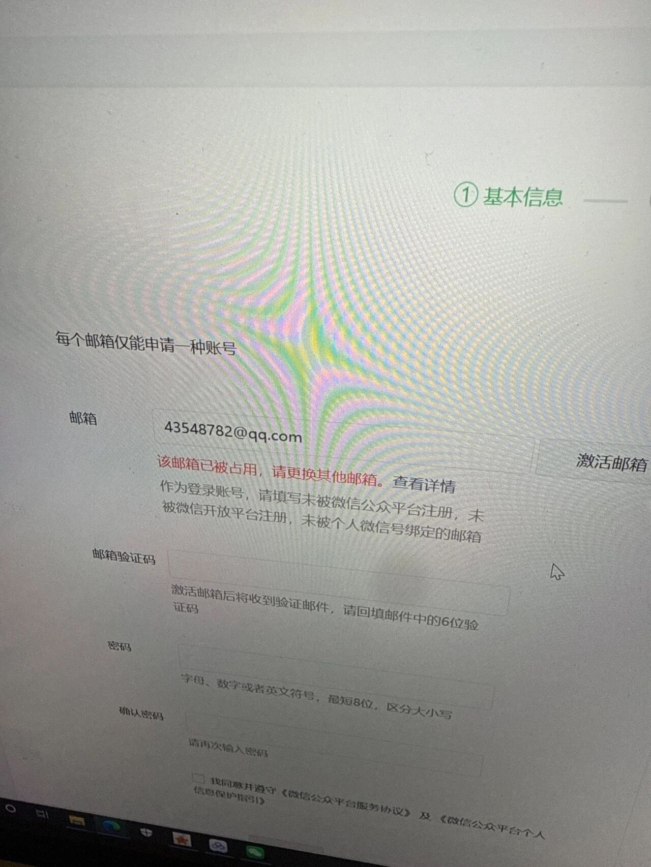 我自己的QQ邮箱43548782@qq.com 注册公众号显示被占用