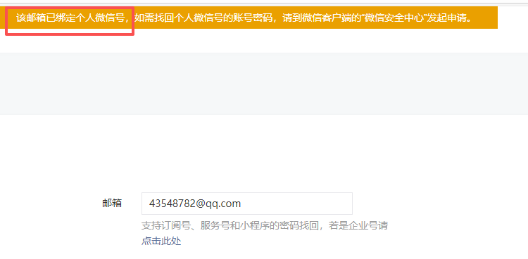 这个邮箱绑定过个人微信了,一个邮箱只能绑定一个账号。