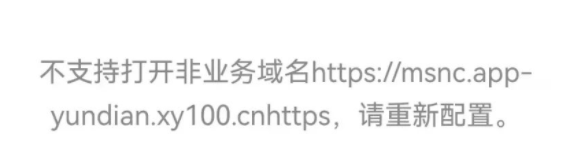 但该程序通过webview访问:https://lj3gex3ujzsg6.cschat.antcloud.com.cn/index.htm?tntInstId=Zvb_tNdo&scene=SCE01204419,仍然是“不支持打开非业务域名”,如下图,第三方开放平添加业务域名发布后已通过审核,不知为什么访问不了。