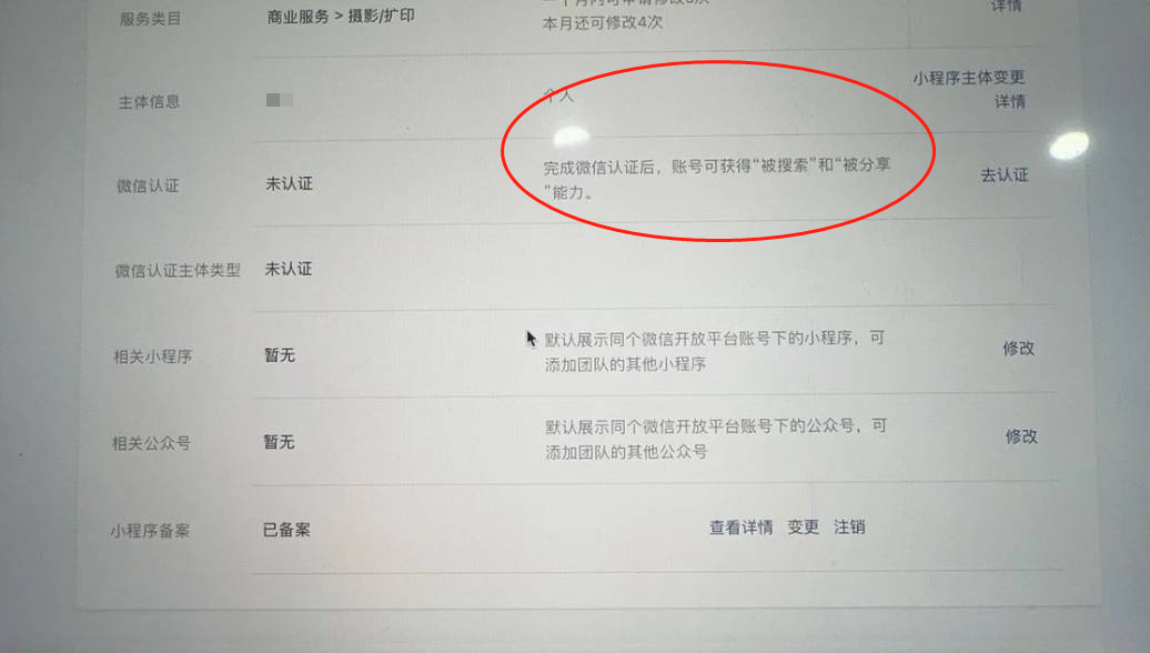 今天突然发现个人小程序需要认证了,不认证的话就无法被搜索也无法分享,请问官方是否有相关通知和步骤教程?