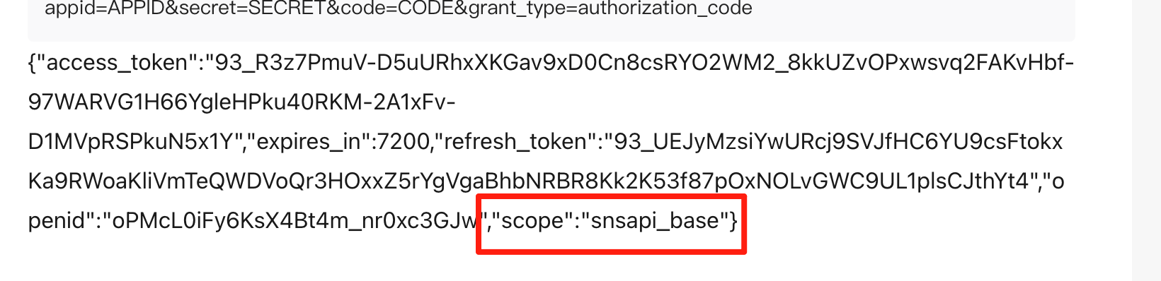 {"access_token":"93_R3z7PmuV-D5uURhxXKGav9xD0Cn8csRYO2WM2_8kkUZvOPxwsvq2FAKvHbf-97WARVG1H66YgleHPku40RKM-2A1xFv-D1MVpRSPkuN5x1Y","expires_in":7200,"refresh_token":"93_UEJyMzsiYwURcj9SVJfHC6YU9csFtokxKa9RWoaKliVmTeQWDVoQr3HOxxZ5rYgVgaBhbNRBR8Kk2K53f87pOxNOLvGWC9UL1plsCJthYt4","openid":"oPMcL0iFy6KsX4Bt4m_nr0xc3GJw","scope":"snsapi_base"}