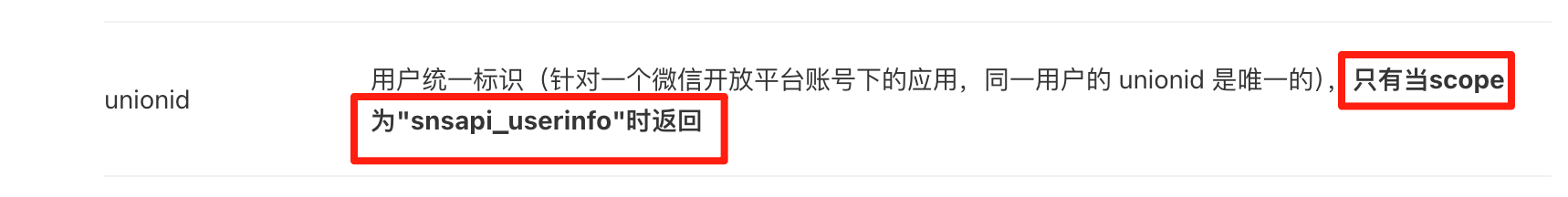 你当前的授权作用域是 snsapi_base ,不会返回 unionid 。