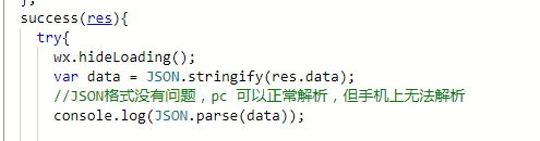 手机端返回的是字符串,使用JSON.parse()解析,也不再执行。try报错{} 。