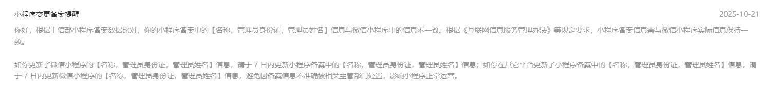 小程序之前已备案已认证,但9月底开始限流,访问量降到每天不到50,每天都二三十,社区反馈后智能回答是因为备案信息不一致,需要变更,麻烦您给看下是因为这个原因吗?