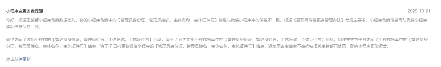 微信小程序信息与小程序备案相关信息不符?