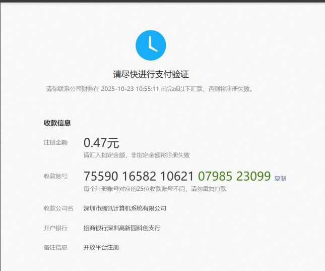 申请微信开放平台对公支付认证,付款账户填写错误,打款成功,退回支付金额。如何操作?