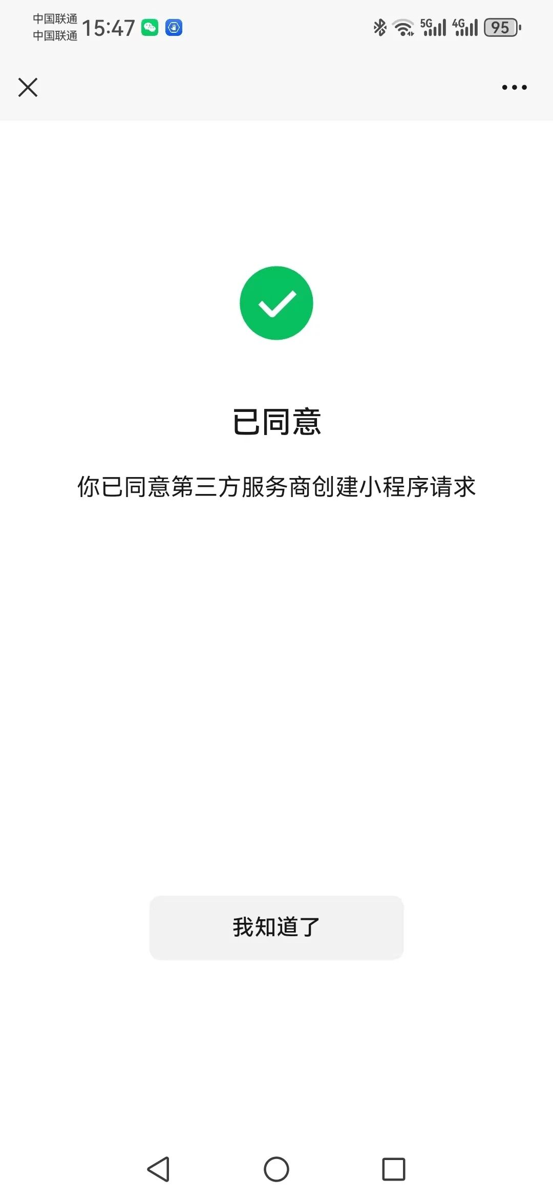 第三方创建微信小程序,客户人脸验证完成,创建成功了 商户授权的时候,没有刚才创建的小程序怎么解决???