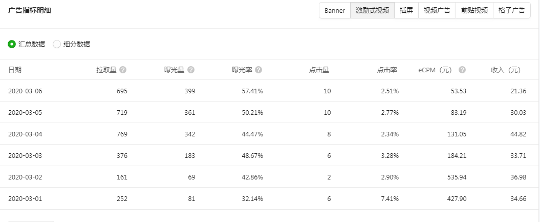 刚上的小程序激励视频广告,怎么发现曝光量(完整播放,且用户手动关闭),好像没有广告收益。