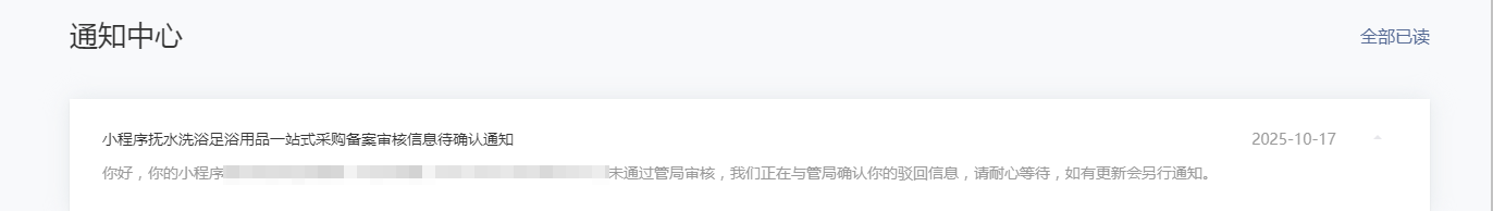 麻烦处理下驳回,我们也能重新提交,管局已经驳回了,但是小程序后台也没驳回,也没办法重新修改提交