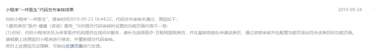 你好,经核实,贵方小程序涉及提供海外医疗服务,属于尚未开放的服务类目,请重新定位小程序功能