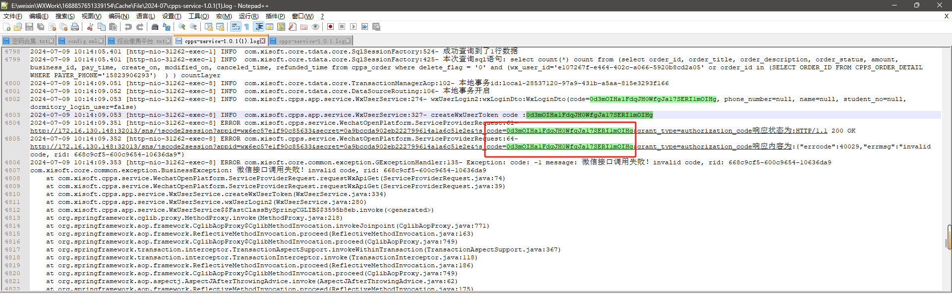 微信公众号网页授权,code获取到之后就调用接口了,后台和前端所用的appid是同一个,有伙伴看下吗 {"errcode":40029,"errmsg":"invalid code, rid: 65e6ba6f-3c25e09e -5b37b769"}