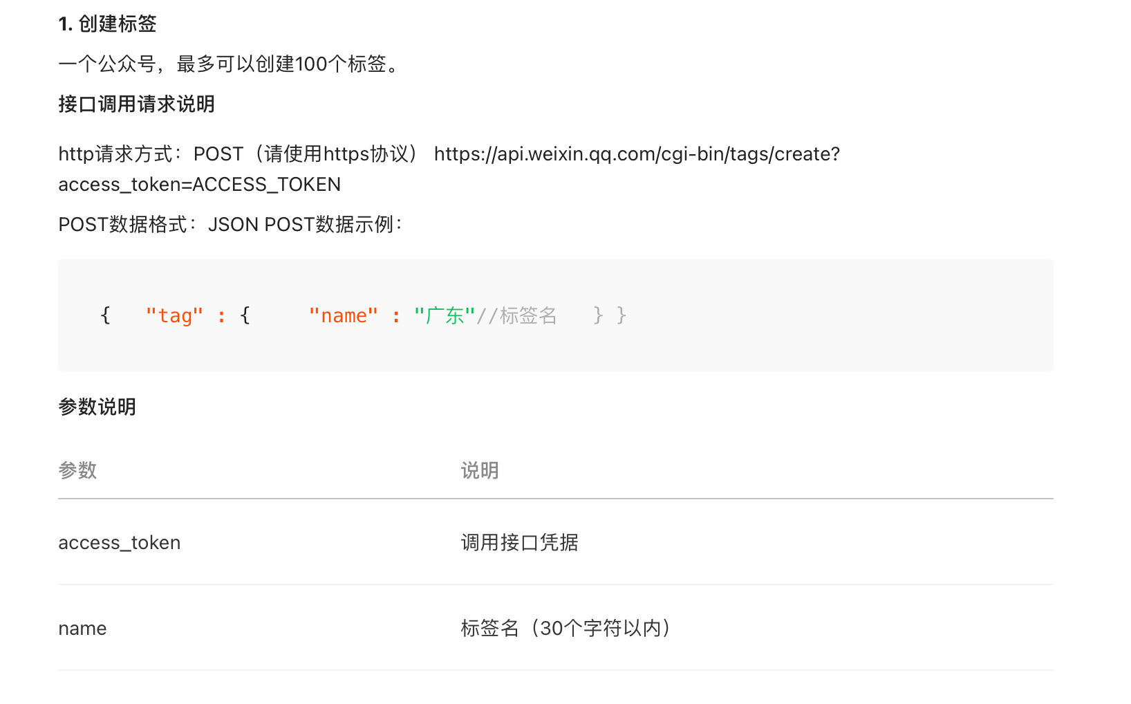 接口:http请求方式:POST(请使用https协议) https://api.weixin.qq.com/cgi-bin/tags/create?access_token=ACCESS_TOKEN
