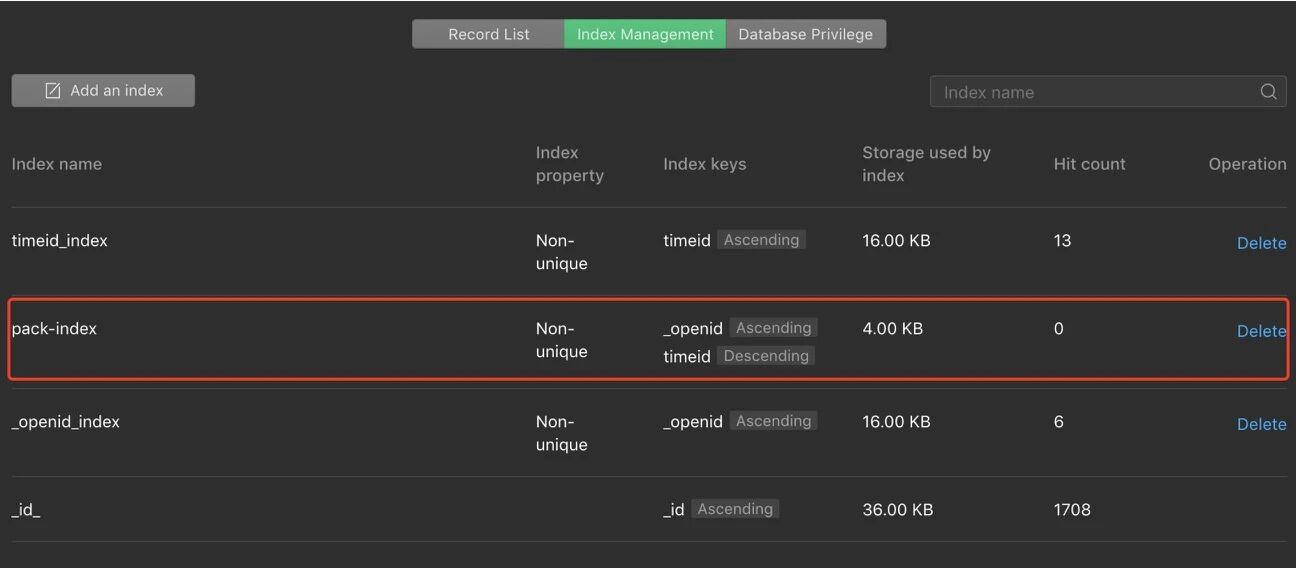 你这个地方建议使用组合索引:建立个索引包含 _openid 和 timeid,参考文档: