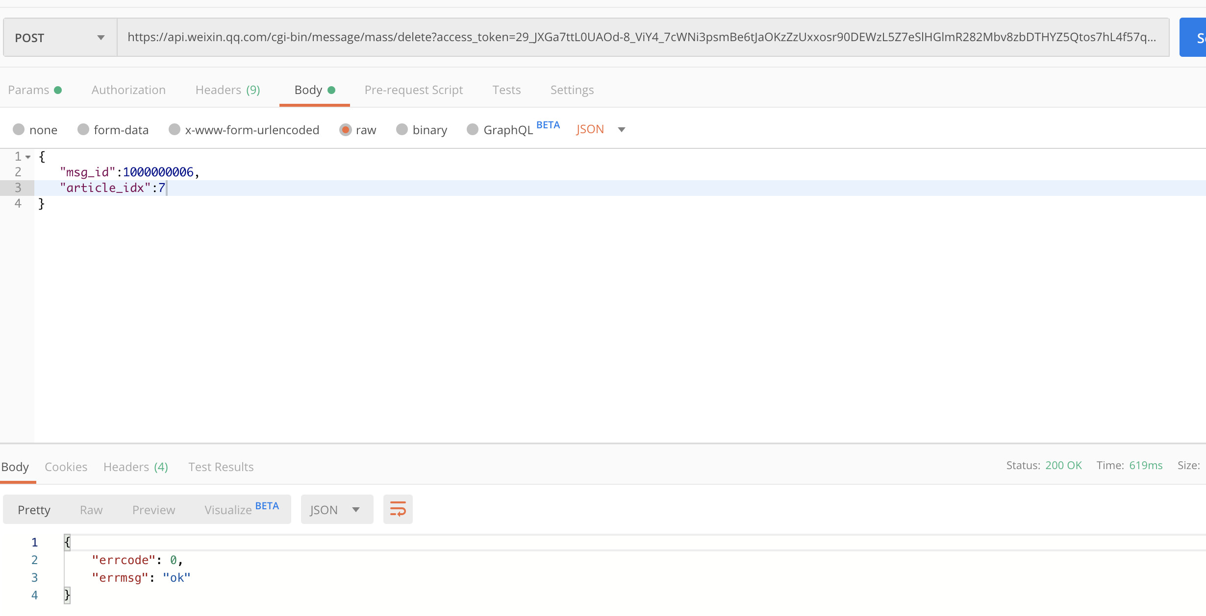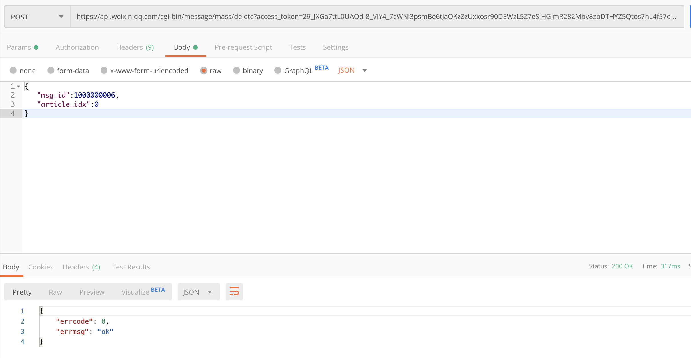 删除群发时article_idx不传或者传值0时接口返回 ( [errcode] => 0 [errmsg] => ok ) 但是文章并没有删除,只有当article_idx传值1-8时可以正常删除,麻烦看下出了什么问题。