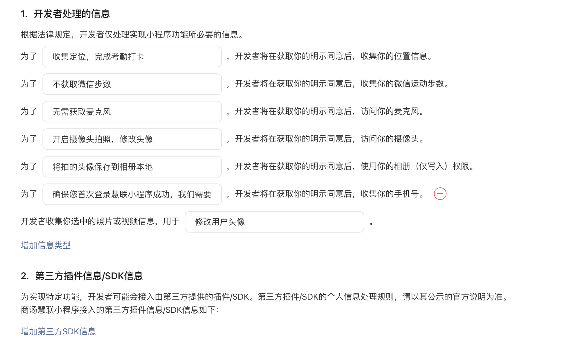 你好,建议仔细代码中是否含有相关代码,若含有相关代码且未使用,可将其代码移除,重新提交审核、重新完善隐私协议。