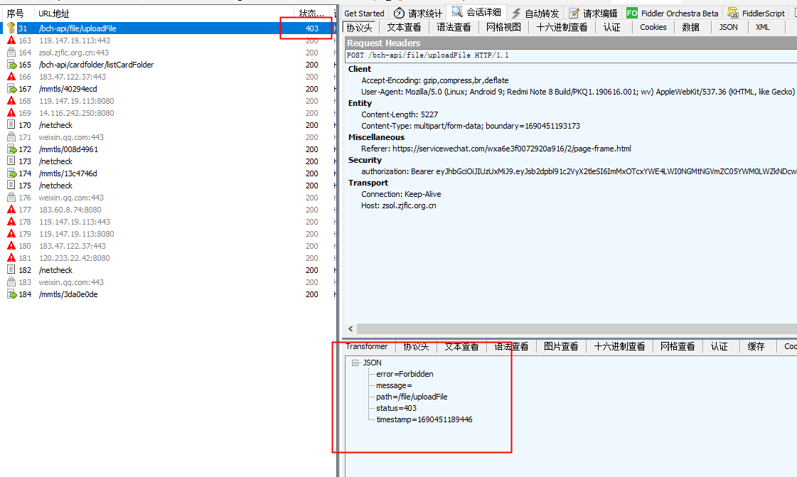 微信小程序,增加上传图片和视频,返回403,其他接口都是正常的。我们内部接口名:/file/uploadFile,是不是接口url与微信内部冲突了?