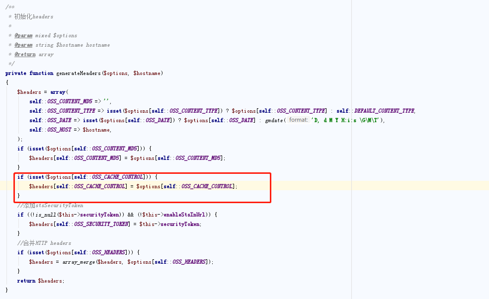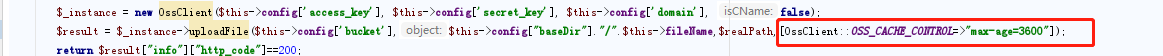 我用的是阿里云的oss存储,折腾了好久,发现可以在阿里云oss控制台设置http头,查看api文档,发现是可以设置http头的。将代码修改成如下: