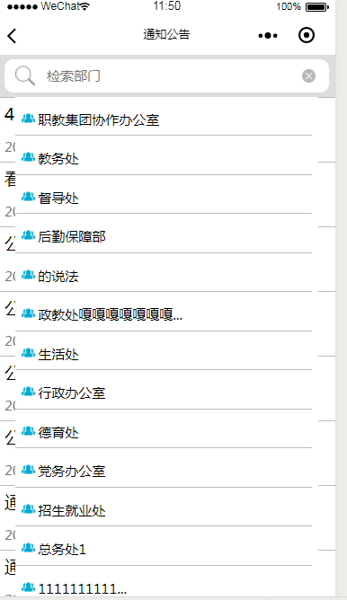 初始化页面时下拉刷新功能能够正常使用,但是在弹出检索弹框后,需要暂时禁用下拉刷新功能,避免在选择部门的时候刷新列表。