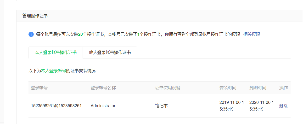 但是进入微信支付后台查看证书,显示为2020-11-06 15:35:19才过期