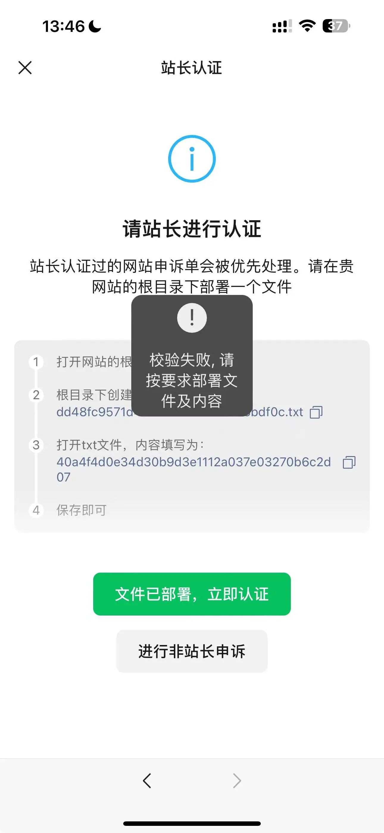 我是公众号打开的网页,我的文件确定已部署,而且能打开,提示我:公众号校验失败请按要求部署文件及内容,我看到有社区说要用https,但是我的是公众号项目