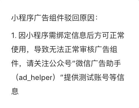 小程序上添加了视屏广告代码,但是广告组件被驳回,提交代码审核时已经有提供账号测试了,还是被驳回!