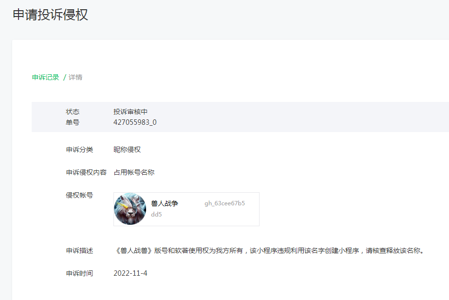 小程序名称被冒用,已经申诉了,要多久有结果呢