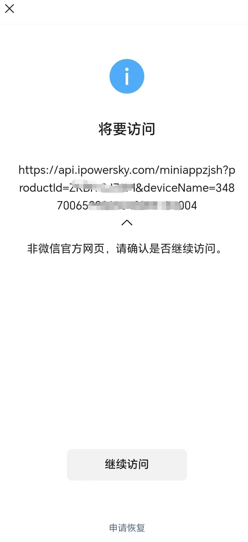 拦截的链接:https://api.ipowersky.com/miniappzjsh?productId=xxxxx&deviceName=xxxxxx