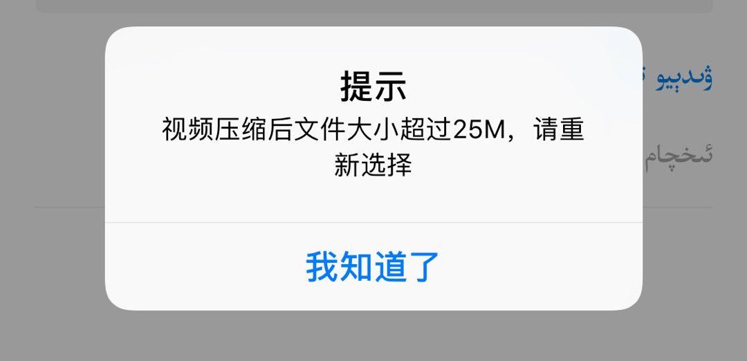 IDE上没有这种提示,但手机上限制视频大小。视频在发送我们自己的服务器上,为什么还有这种限制呢?