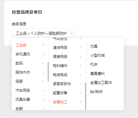 你好,小商店支持售卖工业品类目,可至“品牌与类目管理”模块中申请对应类目,并于类目资质中上传相关资质,审核通过后即可上架相关商品。