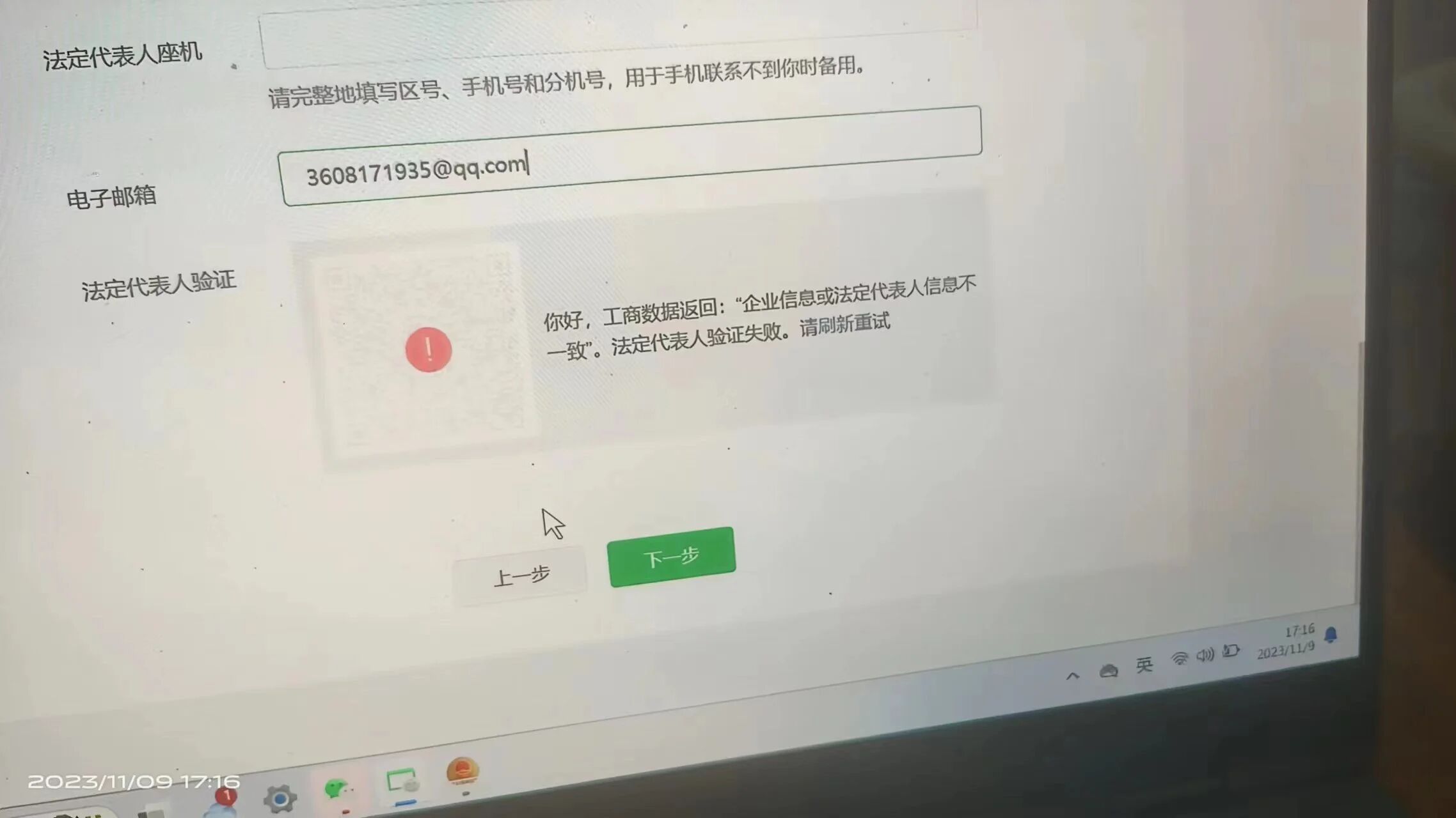 你上边法定代表人的身份证图片上传的是谁,就让他用自己的微信扫码认证