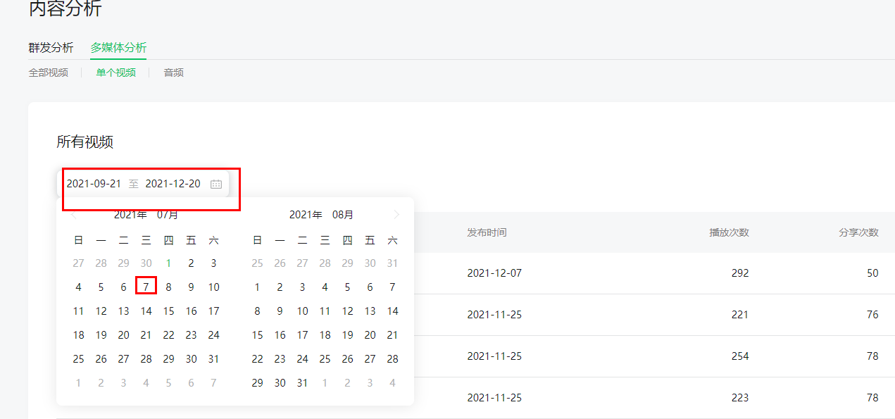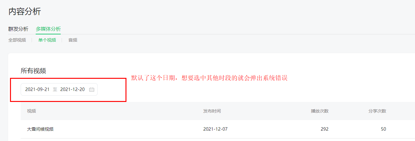 微信公众号后台的视频数据怎么看不了所有视频数据啊?只能看自动显示的近三个月的吗?