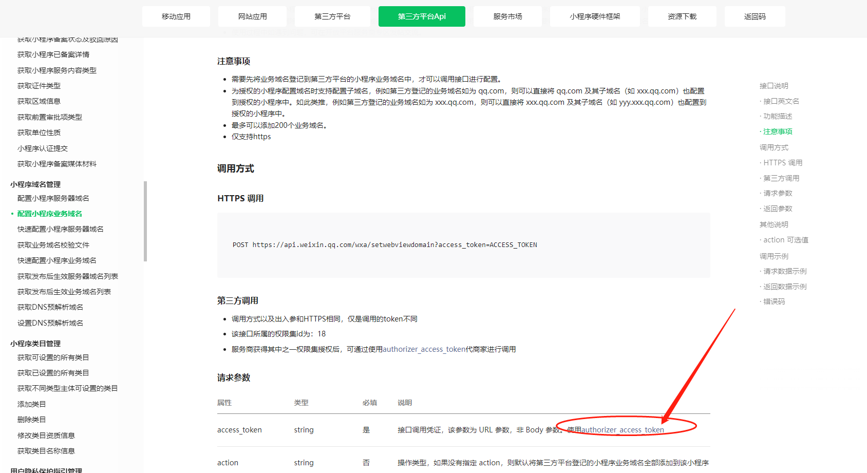 api unauthorized rid: 66024b0d-05c9ea99-5805d068 小程序授权给开放平台成功,设置小程序服务域名
