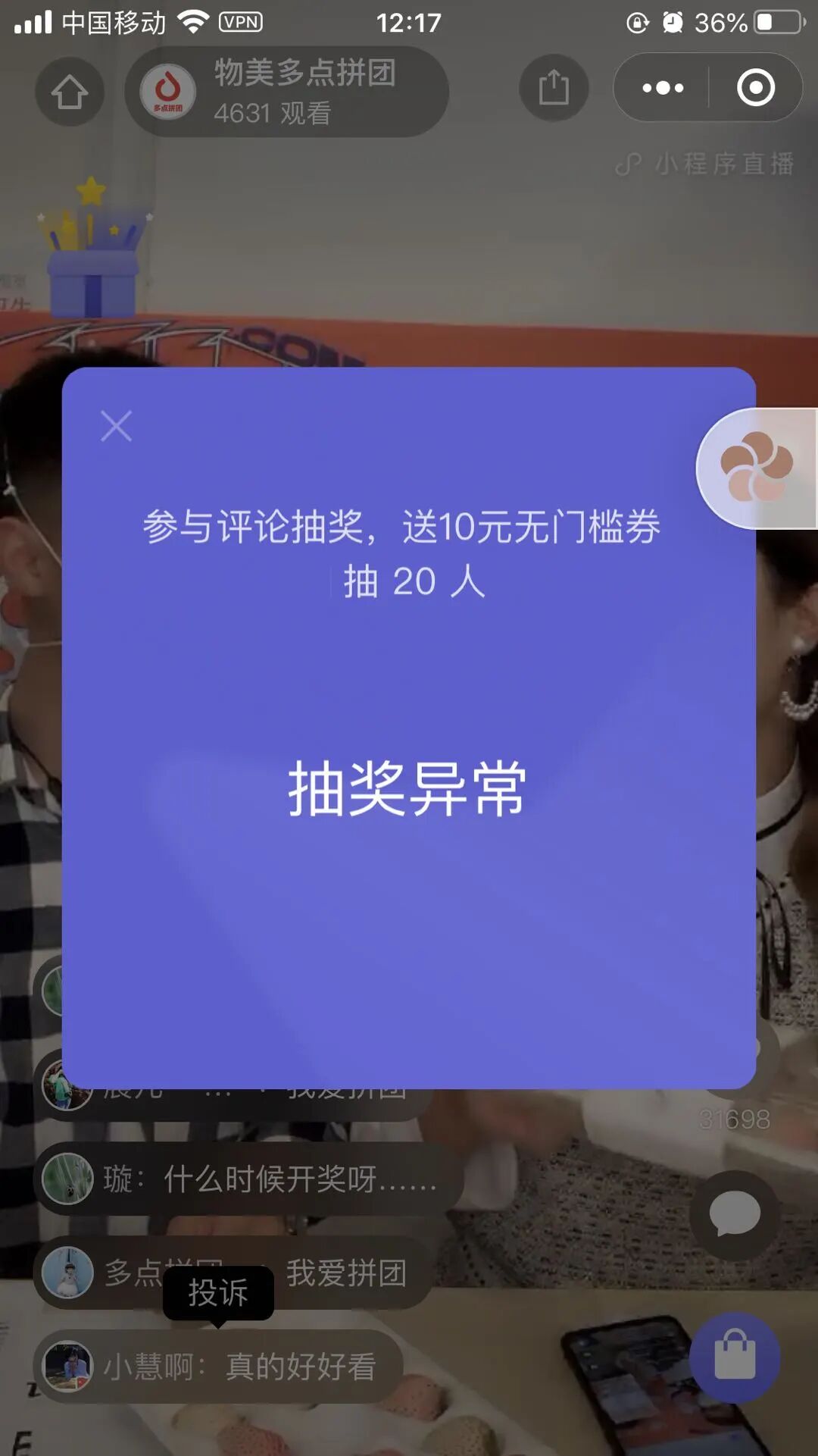 小程序正在直播,5000多人正在观看 ,抽奖,但是出现抽奖异常!请尽快解决!!!
