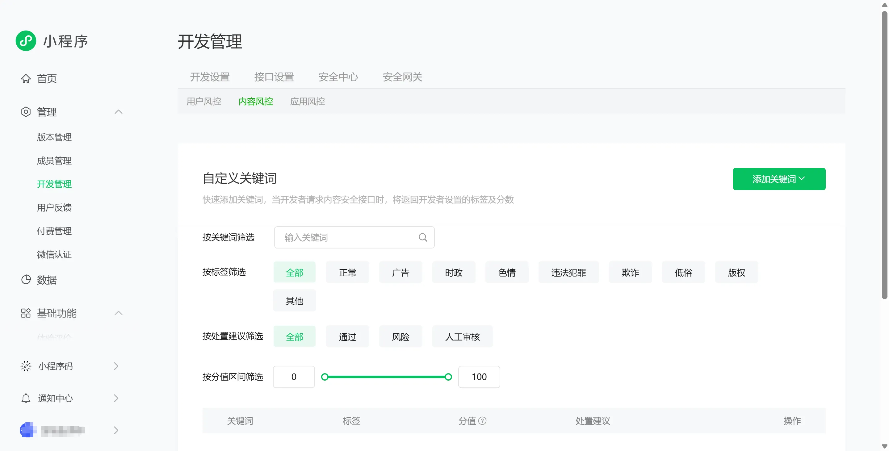 他妈的这个词也算敏感词吗,如果需要拦截更多关键词可以自行到小程序后台添加