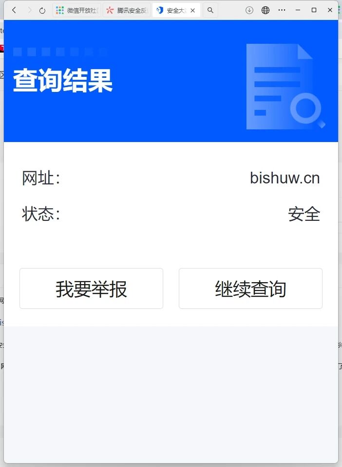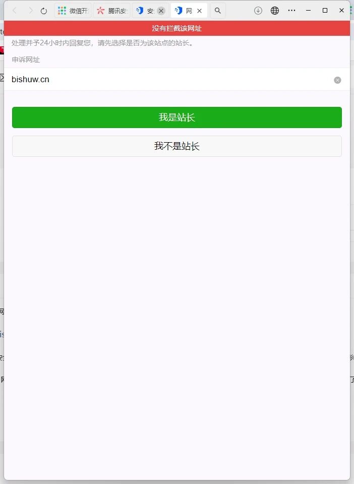 也使用了「腾讯安全-网址安全中心[6]」对网站域名进行检测,显示的是域名安全并没被拦截,但是就是显示需要访问,这个大大影响了我