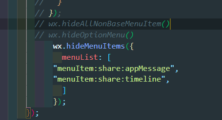 页面内我使用了wx.hideMenuItems这个方法,但是分享里面我隐藏的项目都还存在,只能tohideOptionMenu这个方法隐藏全部,所以说隐藏部分分享按钮这个api是失效了么还是我使用有问题