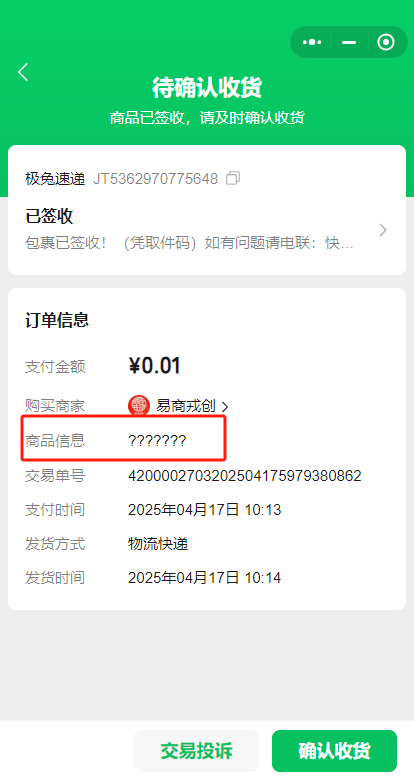 微信推送给我的订单信息,出现了乱码