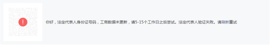 你好,核查发现填写的主体名称与营业执照上的主体名称不一致,故法人验证失败。请严格按照营业执照的主体名称填写。