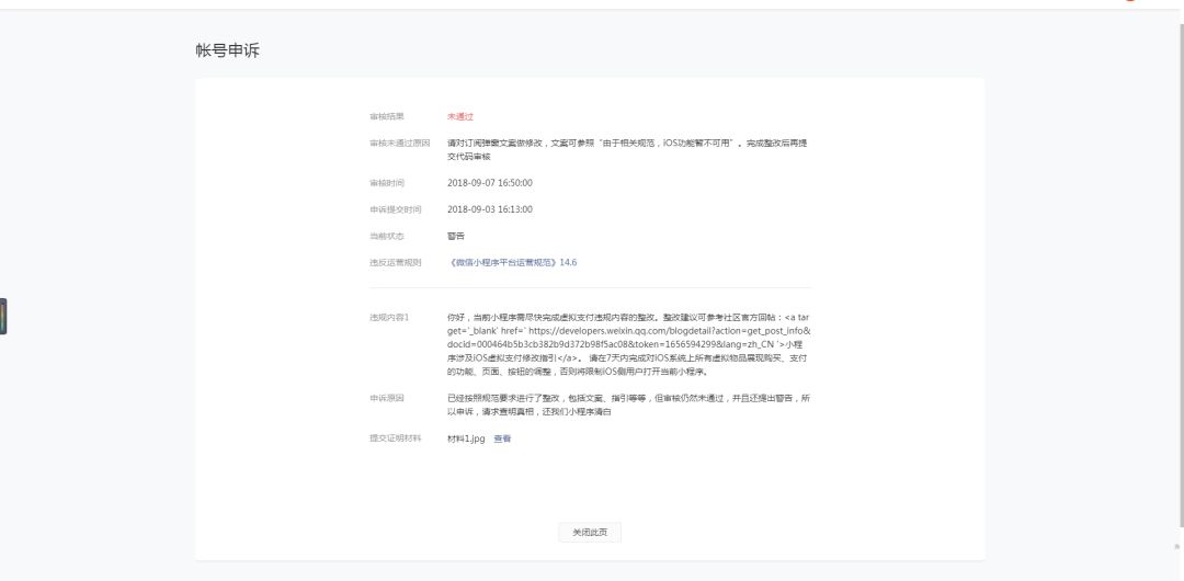 我们已经按要求去掉了虚拟支付,现在只有实物支付,而且代码也审核通过后发布了,但仍然封禁了ios搜索接口和ios支付接口,申诉后也反馈没有去掉虚拟支付。请一定要查明情况,恢复小程序的ios搜索和支付功能。