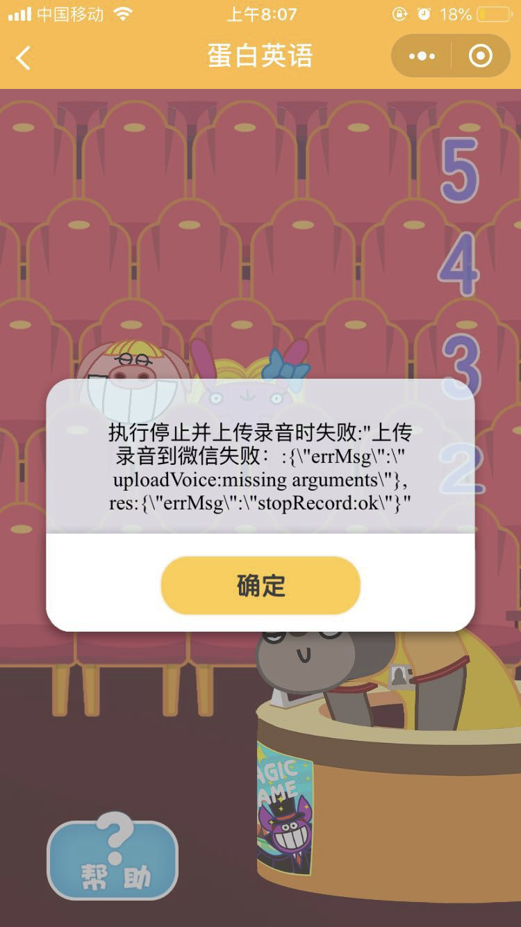 在小程序web-view里面用jssdk调用录音接口,录音结束用wx.uploadVoice接口上传录音时有时候会报错: