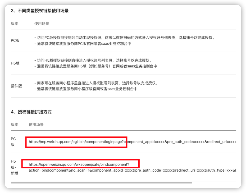 PC版- 访问PC版授权链接则会自动出现授权码,商家以微信扫码的方式进入授权账号列表页,选择账号以完成授权。