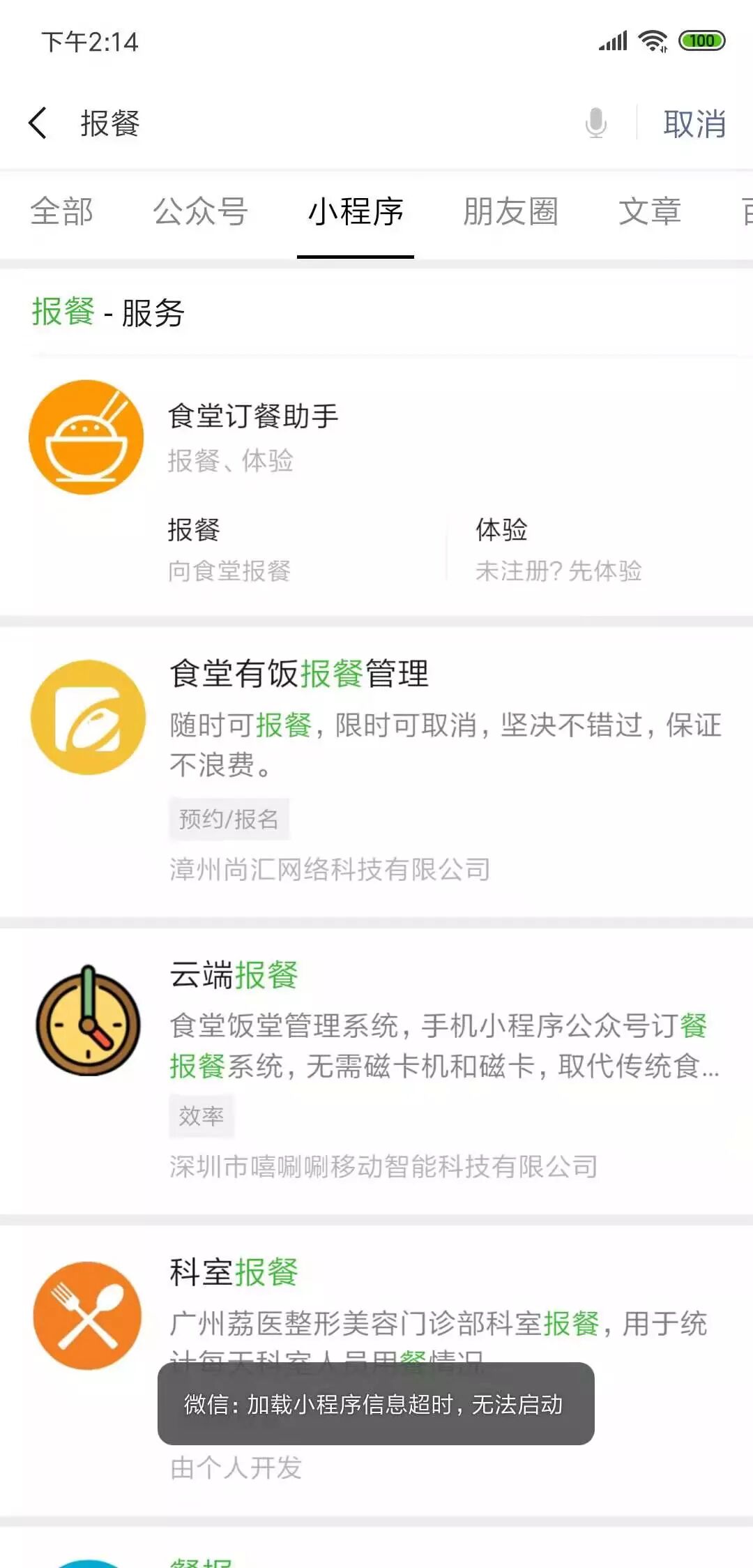 微信搜索出来的服务直达功能,点击功能都是提示加载超时无法启动,试了很多个类似的都是这样的情况。。。。