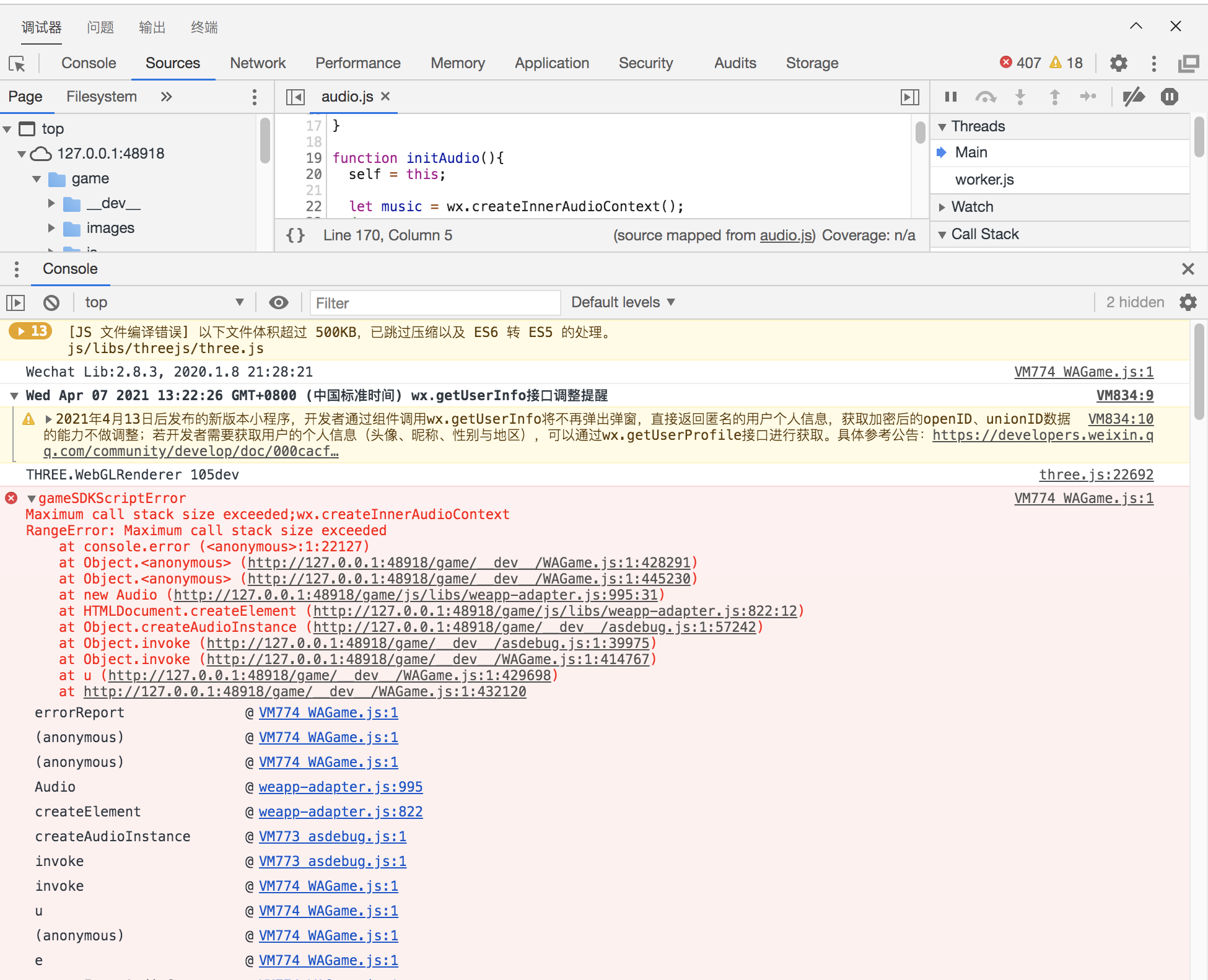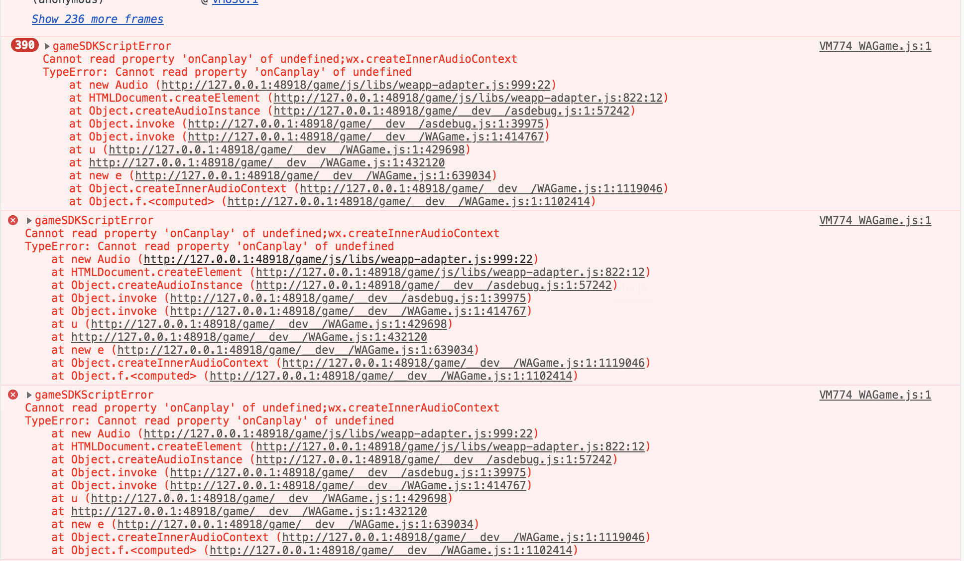 再打开之前的项目就报了几百个错误,只要把wx.createInnerAudioContext这句注释掉就一条都不报了
